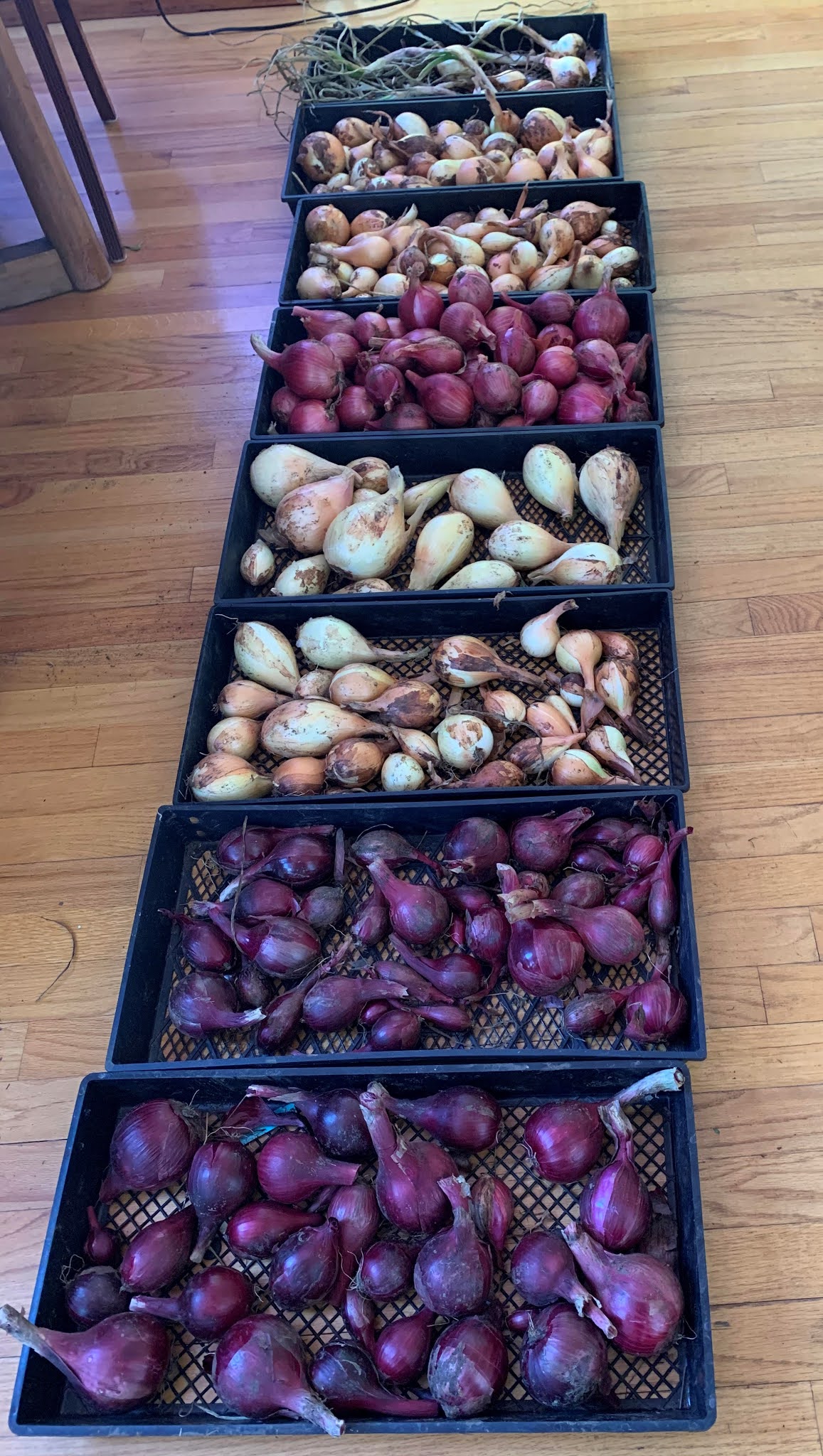 My onion harvest is dried. Time to store them in the basement. This is the biggest bonanza of onions i've ever had: a harvest of 225. I am ready for winter.